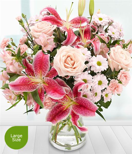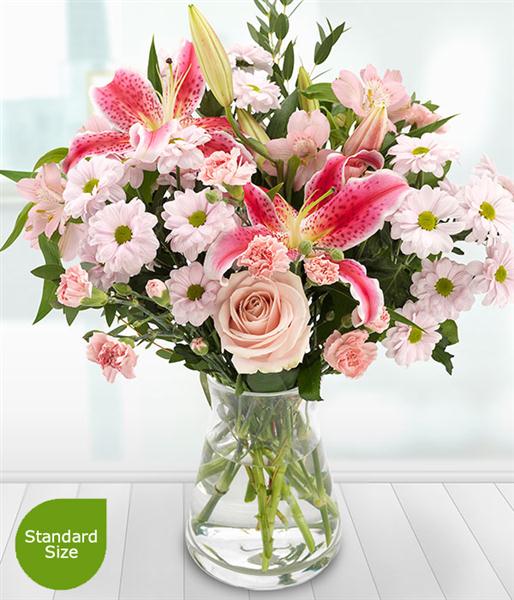 Please note that due to the seasonal availability of flowers it may be necessary to vary individual stems from those shown. Our skilled florists may substitute flowers for one similar in style, quality and value. Where our designs include a sundry item like a vase or basket it may not always be possible to include the exact item as displayed. If such an occasion arises we will make every effort to replace the item with a suitable alternative.