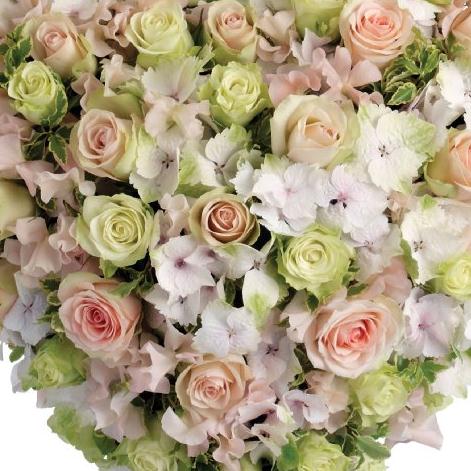 Pink Rose with a pink and green variety of flowers . Creating the perfect farewell.