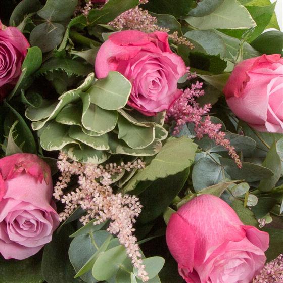 A simple tied bouquet of 6 roses in your choice of pink, red, white or yellow. Choose either 6 roses as pictured or 12.