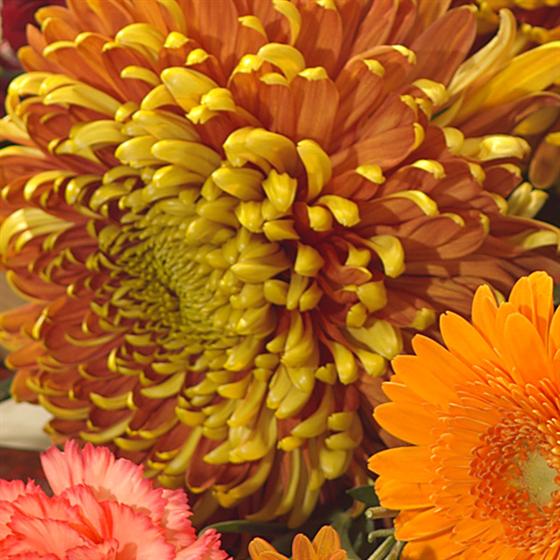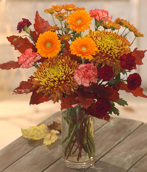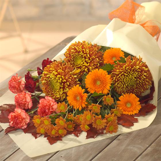 A powerful mix of colours and flower combinations come together in this autumn inspired flower bouquet, capture the essence of autumn perfectly.